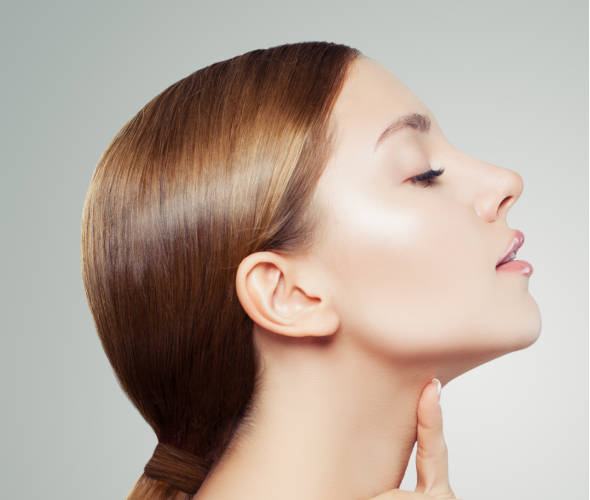 • widoczne uniesienie owalu twarzy
